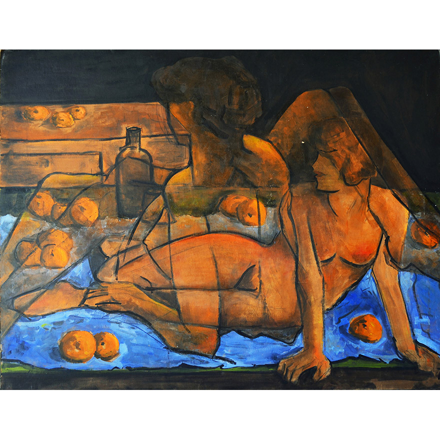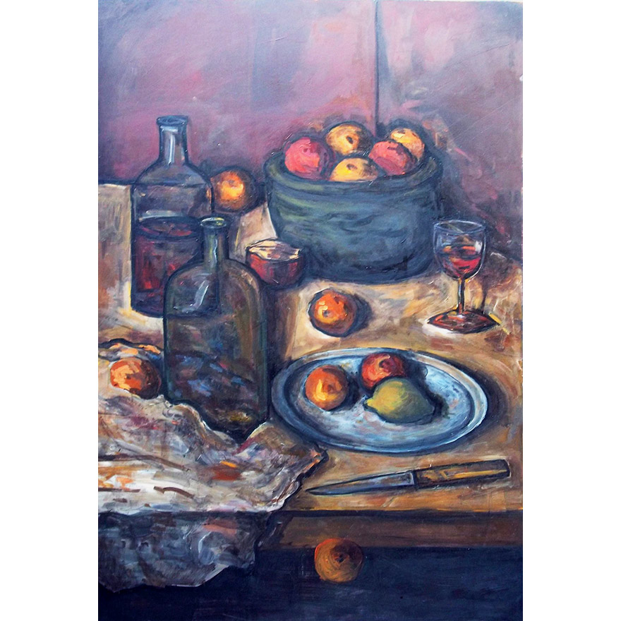 La serie Bodegones muestra representaciones de escenas naturales y diarias, disposición de objetos comunes que en algunas circunstancias desencajan. Objetos que, sin embargo, logran amoldarse al universo construido por medio de tonalidades y formas, destacando un erotismo de tintes oníricos, que dejan al observador inquieto por las rupturas que allí se fabrican.